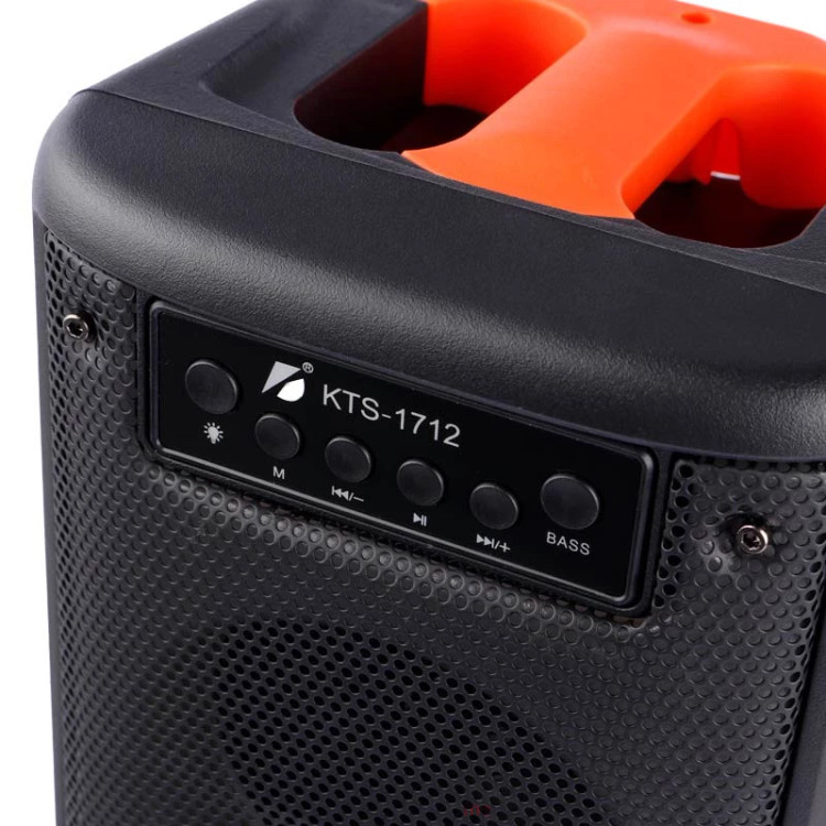 اسپیکر KTS-1712 با طراحی جمعوجور و سبک، به راحتی قابل حمل است. این اسپیکر دارای دستهای برای جابجایی آسان و سریع میباشد، ایدهآل برای استفاده در سفر، پیکنیک، دوره همی ها ، تولد ...