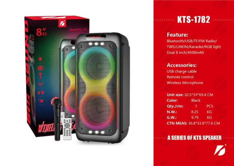 این اسپیکر یک اسپیکر به سبک پارتی باکس ولی با صدایی فوق العاده بلند و با کیفیت است ،که دارای دو ساب 8 اینچی و یک تیوتر 1 اینچی می باشد که می تواند صدایی با قدرت 4500 وات پمپو را تولیدکند.