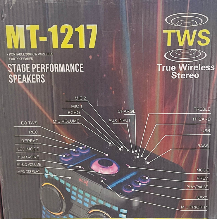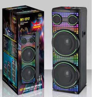 صدای قدرتمند و فراگیر: مجهز به دو بلندگوی ۱۲ اینچی و توان P.M.P.O 30000W، این اسپیکر صدای بیس قوی و شفافیت بالایی را ارائه میدهد تا از موسیقی با تمام وجود لذت ببرید.