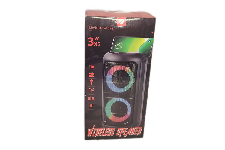 اسپیکر بلوتوثی قابل حمل مدل KTS_1296 ، کیفیت صدا عالی، ابعاد 29 در 13 ، وزن : 1,250 ، دارای دو باند ، رقص نور زیبا ، هم با سیم و هم بی سیم کار میکنه ، اتصال بیسیم از طریق بلوتو ث ، اتصال با سیم از طریق جک 3.5 میلی متری صدا ، رابط ها : micro USB ، شیار کارت حافظه micro SD ،