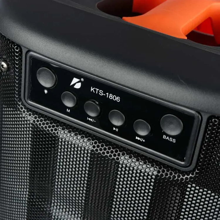 علاوه بر این، اسپیکر KTS-1806 دارای ورودی AUX، پشتیبانی از فلش مموری USB و کارت حافظه میکرو SD تا حجم 32 گیگابایت است که به شما امکان میدهد تا فایلهای موسیقی ذخیره شده خود را به راحتی پخش کنید. همچنین، وجود درگاه ورودی میکروفون و اقلام همراه مانند یک میکروفون و کابل میکرو یو اس بی، این اسپیکر را به یک گزینه ایدهآل برای کارائوکه و استفاده در مهمانیها تبدیل کرده است.ورودی میکروفون و اقلام همراه مانند یک میکروفون و کابل میکرو یو اس بی، این اسپیکر را به یک گزینه ایدهآل برای کارائوکه و استفاده در مهمانیها تبدیل کرده است.