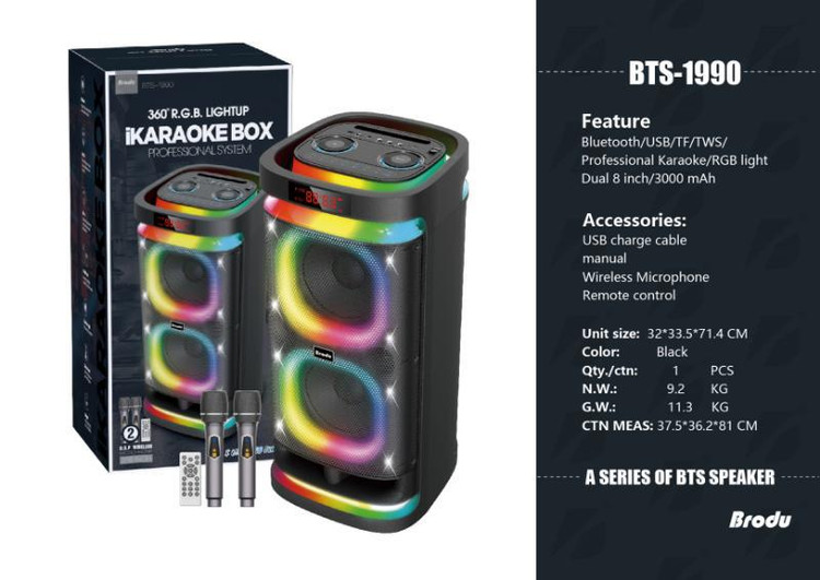 اسپیکر bts-1990 یک اسپیکر جمع و جور ولی با صدایی فوق العاده بلند و با کیفیت است که می تواند صدایی با قدرت 4500وات را تولید کند.